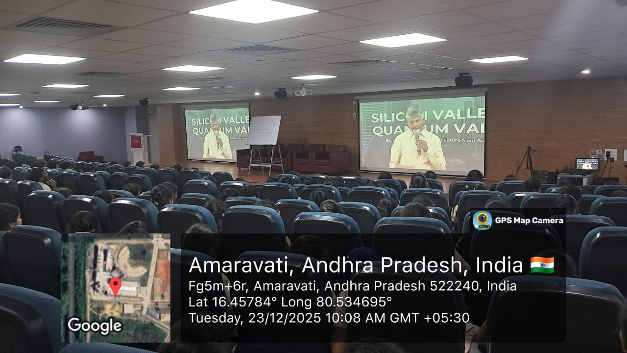 WISER Presents QUANTUM MASTERCLASS was conducted at Amrita Vishwa Vidyapeetham, Amaravati Campus in the Ground floor Seminar Hall from 9:30 AM to 10:30 AM. The meeting was conducted online by Hon’ble Chief Minister Nara Chandrababu Naidu Sir, reinforcing AP’s vision to emerge as a leading hub for quantum education and innovation. He states that Andhra Pradesh is strengthening its Quantum Valley initiative in alignment with the National Quantum Mission. Through the WISER–Qubitech Quantum Programme, over 50,000 students across the state have enrolled, with 51% women participation. The initiative aims to develop 1,00,000 quantum-ready professionals.The programme witnessed enthusiastic participation around 350 Amrita students.