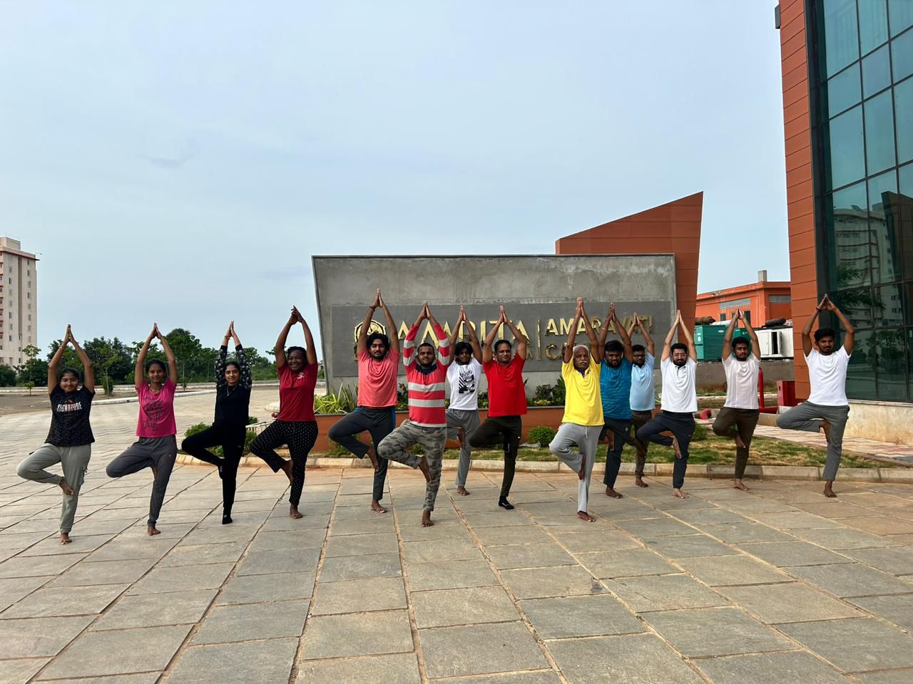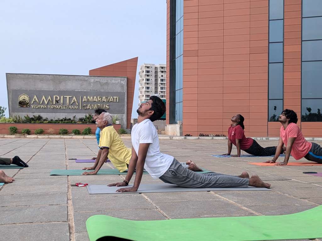The Yoga Day celebration at Amrita Amaravati Campus witnessed enthusiastic participation from students and staffs, who engaged in guided yoga sessions and mindfulness activities promoting wellness and balance. The event fostered a positive atmosphere, highlighting the importance of physical and mental well-being.